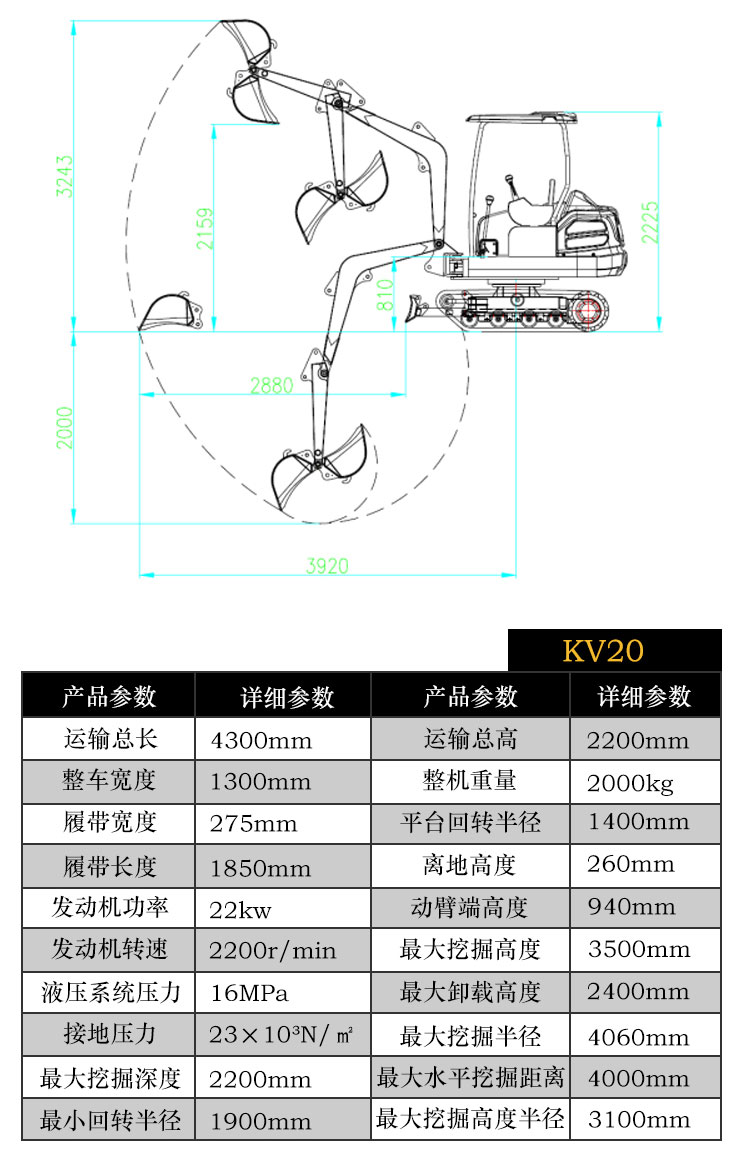 • kv20履帶式小型挖掘機