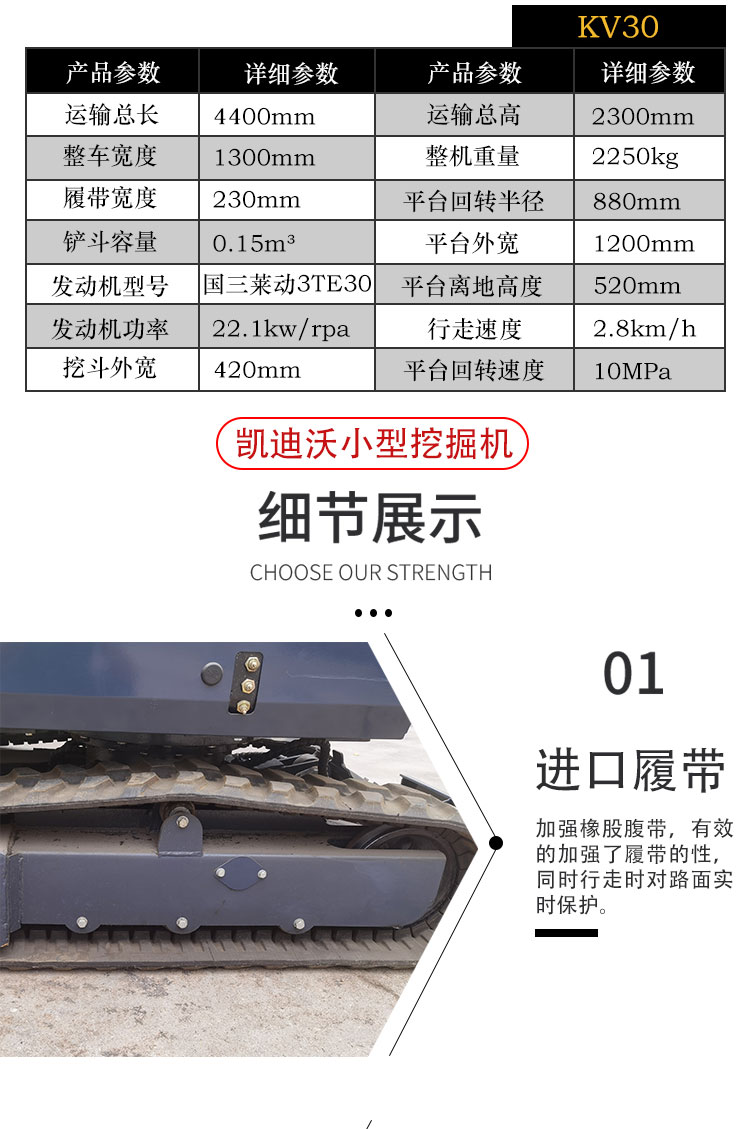 整機(jī)重量:2250kg履帶寬度:230mm發(fā)動(dòng)機(jī)功率:22.1kw